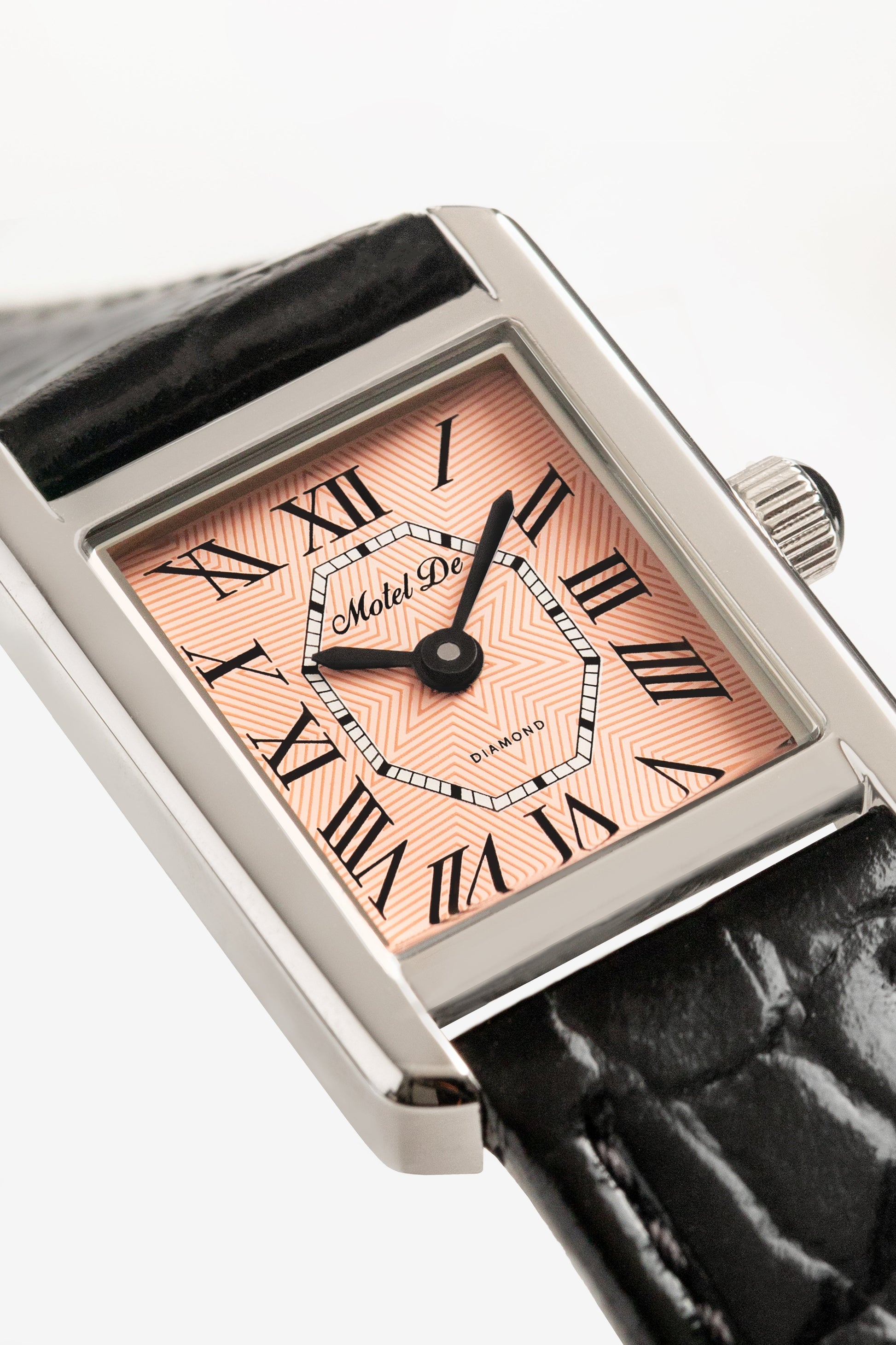 In the center, a crisp white minute track forms an octagon — subtly nodding to the diamond cut shape, the signature of this series.