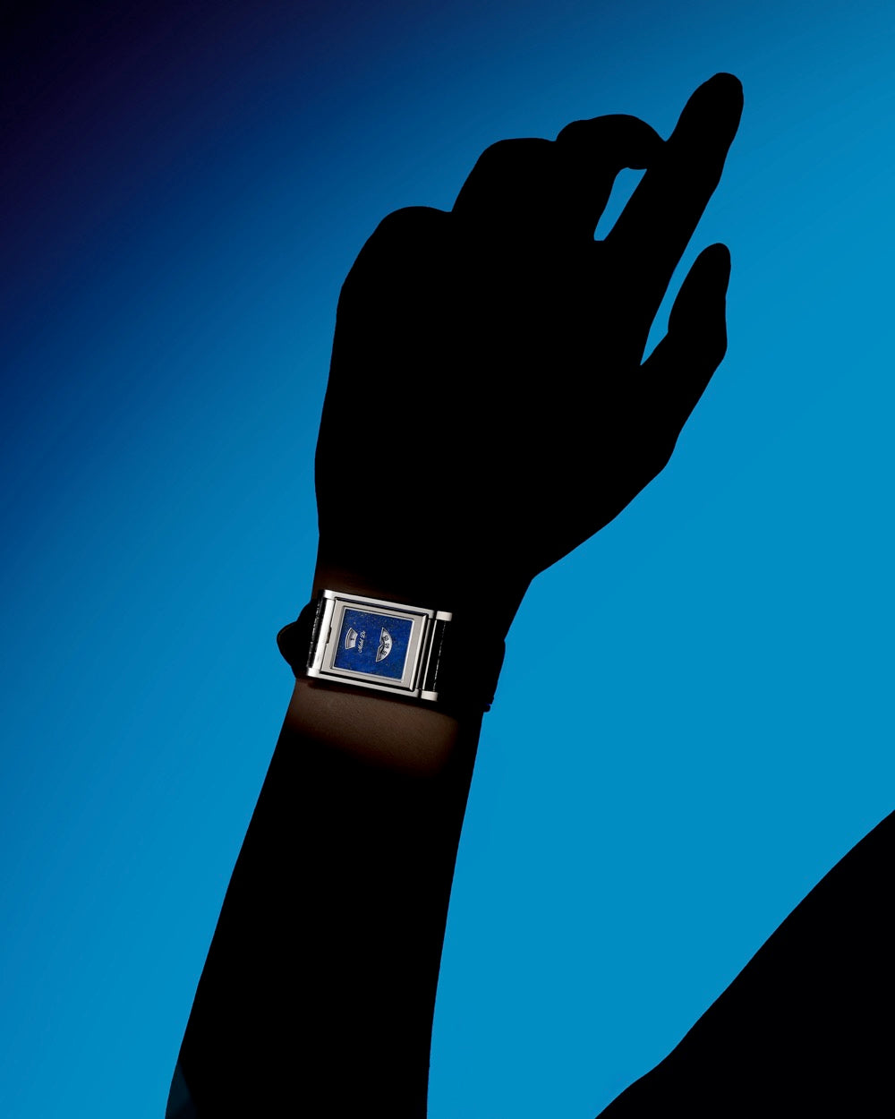 Together, the rotating hours and retrograde minutes create a dialogue of motion: one fluid, one sudden shadow and light in perfect balance.